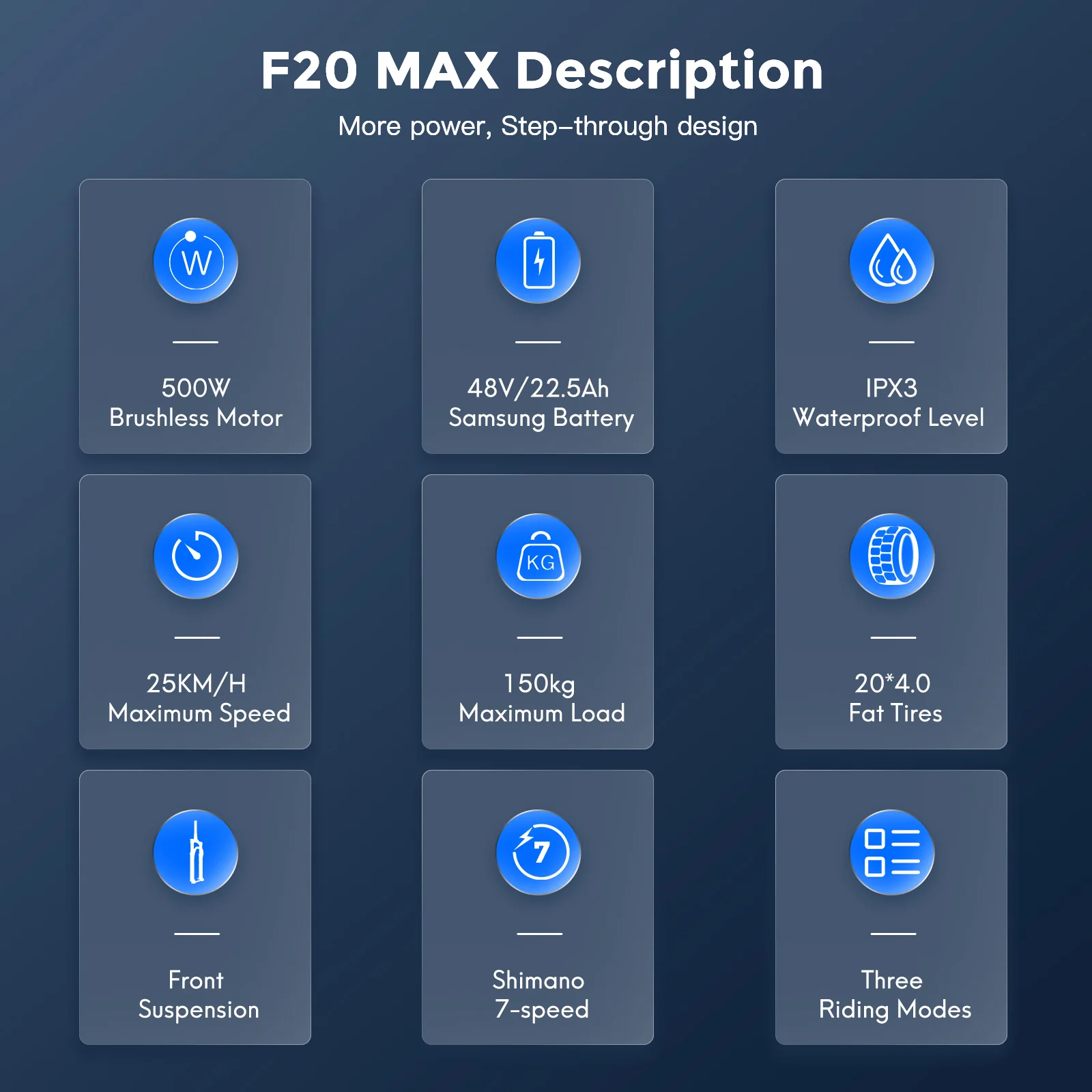 • Fafrees F20 MAX 2023 Version 500W 20" klapprad e-bike Fat Bike Elektrofahrrad 22,5 Ah Samsung Akku
