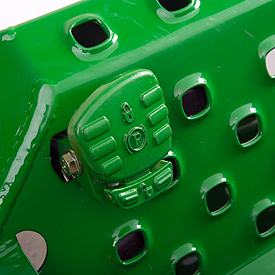 • Significantly fewer welds on the deck shell to wear or break - it is forged from a single sheet of steel rather than multiple fabrications. An anti-skid step on the deck provides easy machine mounting.