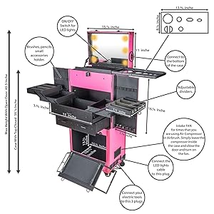 • Makeup Artists Multifunction lighted Cosmetics Rolling Case with Fan