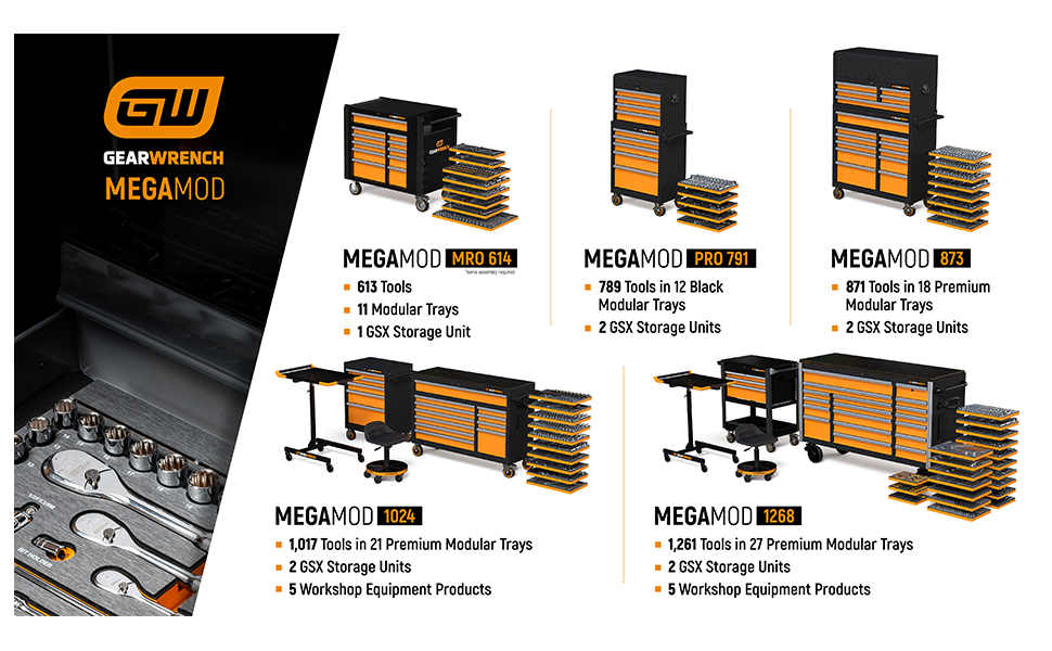 GEARWRENCH 1268 Piece Master Mechanics Tool Set in Premium Modular Foam Trays with GSX Mobile Tool Storage